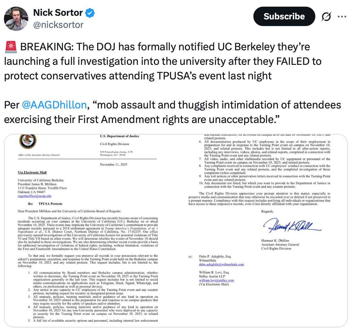 Moving forward, we should see ALL federal funds to UC Berkeley revoked effective immediately. Faculty members should also answer for the steps they did or didn’t take to prevent such extreme violence.