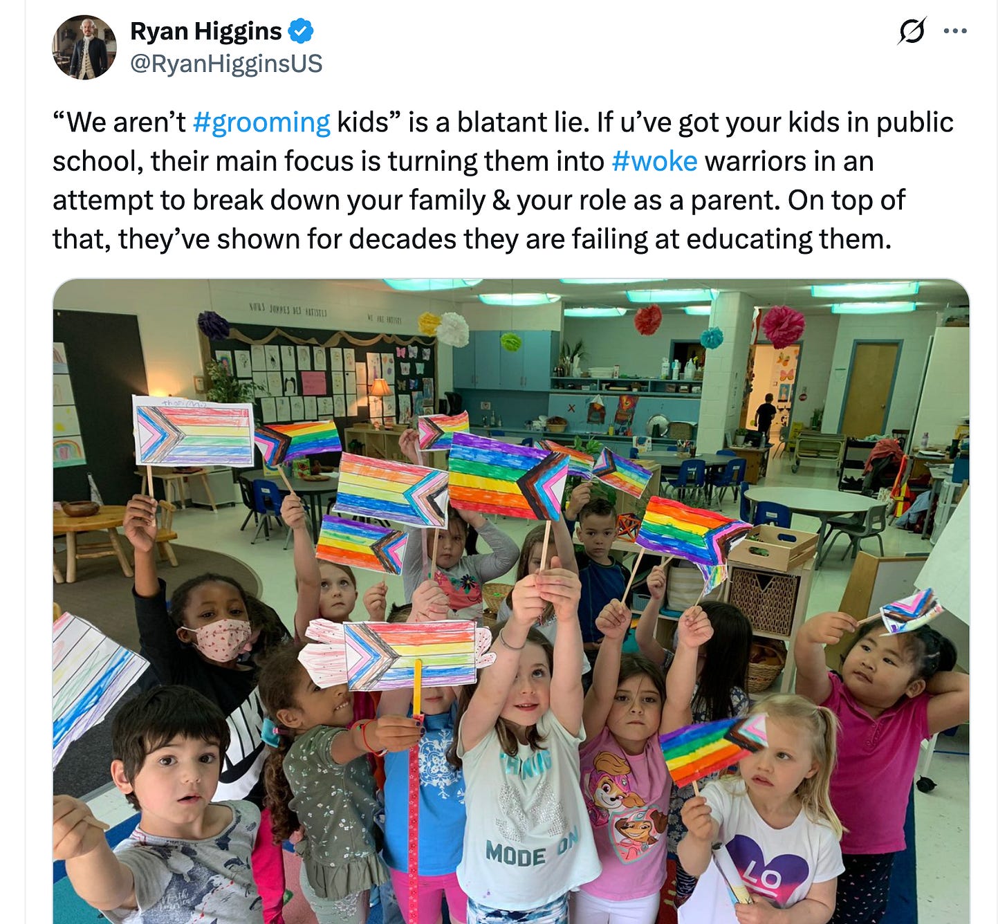 Ryan Higgens, a conservative commentator on X says that schools “groom kids” by turning them into “woke warriors” that break down nuclear family structures and parental roles, while failing at giving them a usable education.