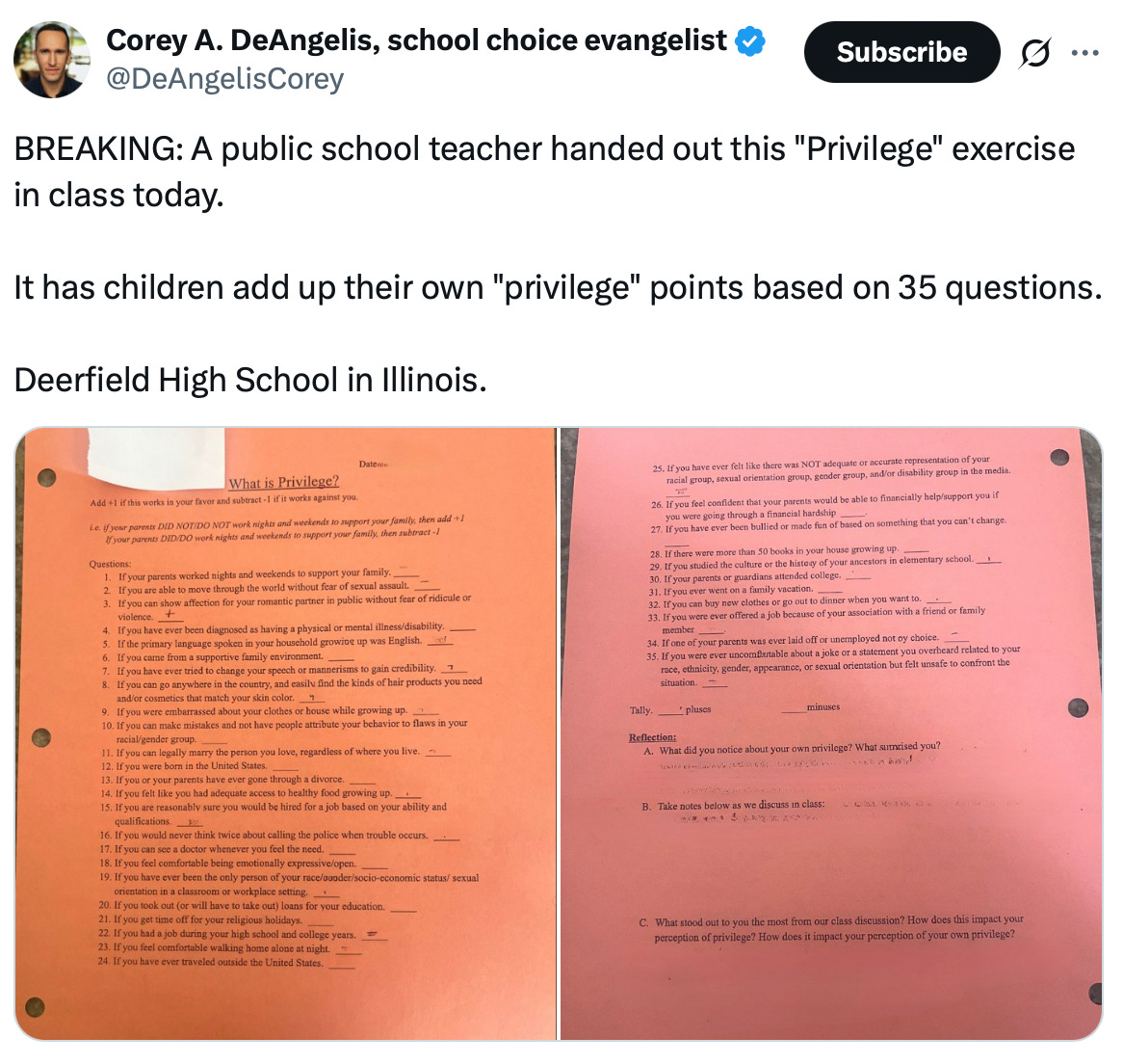 In Illinois, Deerfield High School is going viral for a “Privilege” assignment it gave to young students.