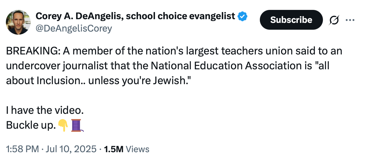 During the NEA’s annual convention in 2024, a union member admitted that hatred for Jews thrives here. Apparently, teachers unions’ professed support for justice, inclusion, etc., only stands “unless [someone is] Jewish.”