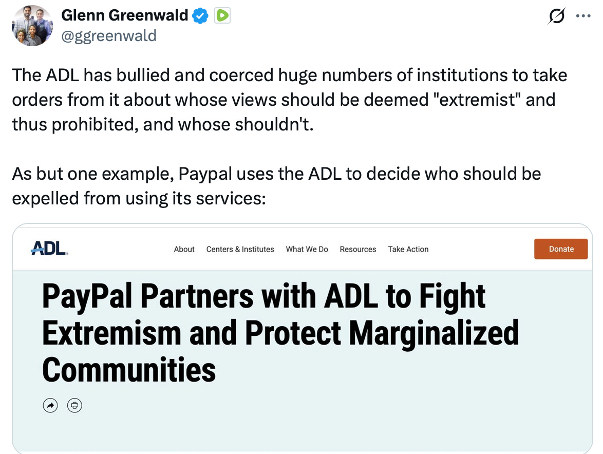 The ADL didn’t just settle for having Wikipedia, PayPal, and watchlists weaponized against parents and Catholics.